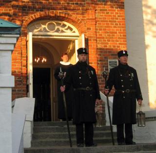 Aftenen begynder på Torvet ved Det gamle Rådhus præcis klokken 21.00. Når klokken falder i slag, står to vægtere klar på rådhustrappen. Vægterråbet lyder: Klokken er slagen 9 - og de synger klokken 9-verset. Herefter tager vægterne folk med gennem Nedergade til kirken, hvor Sognepræst Annette Hedensted tager imod ved kirkedøren. Man bydes indenfor til en kort aftenandagt, med gode, kendte salmer og bøn. Der synges og bedes på både dansk, engelsk og tysk, og andagten henvender sig til både fastboende og turister, der mødes i den særlige aftenstemning i kirken. Kirkens organist spiller på orglet til indledning og afslutning, samt til fællessalmerne. Midtvejs i andagten spilles et stykke musik på orglet.