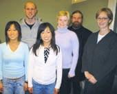 De fire personer yderst til venstre har hver især fået en legat-portion på 15.000 kroner fra Isenkræmmer Chr. Reventlow Poulsens Fond. Forrest ses Lene Hee Christensen og Mette Hee Christensen, og bag ved dem ses Christian Hansen og Tanja Janerka. De fire legat-modtagere flankeres af to medlemmer fra legat-komitéen, Tom André Jensen og Henriette Lühne. Legat-uddelingen fandt sted i Kulturhuset Pavillonen i Grenaa fredag den 26. november.