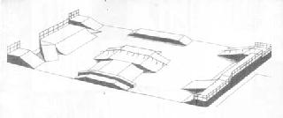 Her ses en tegning, der i grove træk viser, hvordan skaterparken i Trustrup kommer til at se ud.