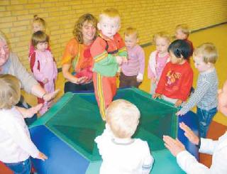 Hver tirsdag formiddag mødes dagplejegruppen således til leg og bevægelse i Nørre Djurs Hallen i Glesborg, og det er tydeligt, at såvel børn som voksne nyder denne ugentlige »gymnastik-time«. Hver anden gang er det med afspændingspædagogen som leder af seancen.