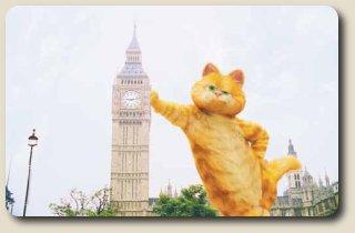 Og således går det til, at Garfield indtager den britiske hovedstad. Han kommer, ser og sejrer: Big Ben, Buckingham Palace, Scotland Yard samt hans nye livret: minced pie (som ganske vist ikke er lasagne, for man kan jo ikke få alt - eller kan man?)