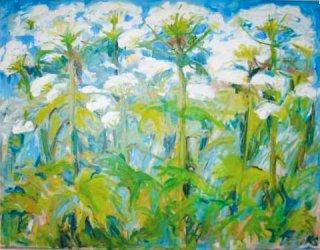 Billedet viser et af Ketty Steffensen billeder af den giftige bjørneklo, som ser helt venlig ud i hendes strålende farver.