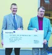 Den 28. november modtog stationsleder Peter Ribergaard i så henseende en check fra Nordea Danmark Fonden på 5000 kroner. Det er Nordea’s filialchef Bent Nørsten, der på billedet overrækker checken til Peter Ribergaard ved Storegade 37, hvorfra Radio Djursland sendte for allerførste gang i lørdags.