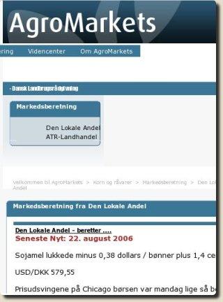 I oktober 2005 lancerede Dansk Landbrugs- rådgivning en hjemmeside (AgroMarkets), som siden er og fortsat udvikles og udbygges. AgroMarkets indeholder et stort udbud af priser og anbefalinger både på råvarer og finansområdet. En række eksperter står bag analyserne og anbefalingerne. Ambitionerne bag Agro- Markets er at give både landmændene og deres rådgivere et videnforspring, som de kan bruge, når de handler råvarer og finansydelser.