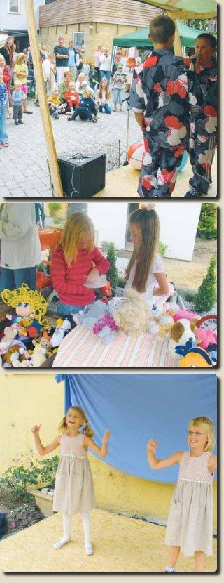 Der var gang i den i gården til »Living Nice« i Lillegade i Grenaa forrige lørdag. Her holdt Living Nice, der indehaves af Susanne Strunge, nemlig et velbesøgt børneloppemarked, samtidig med, at der blev afviklet et storstilet »Scenen er Din-show« - med præmier til vinderne naturligvis.