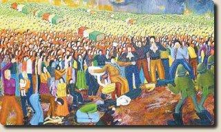 Kany, der er syrisk kurder, kom til det fredelige Danmark for nogle år siden. Det er kontrasten mellem to kulturer og mellem 2 vidt forskellige menneskesyn, der er temaet for hans farvestrålende billeder. Nogle af billederne skildrer skræmmende og meget voldelige optrin med tortur og rædsel. Andre billeder er den rene naivisme med råhygge, fred og idyl. Udstillingen i Kulturhuset viser begge disse sider af Kany Alans kunstneriske virke. Med billedet Slagteri kommer al krigens gru lige op i beskuerens ansigt. Vi ser i baggrunden kister indhyllede i det kurdiske flag, mens soldater i forgrunden nedskyder kvinder og børn. I billedet »Opgang« titter beskueren ud af vinduet, hvor den opgående sol stiger bag de nøgne vintertræer, mens en lille ny grøn plante trygt vokser op i stuens lunhed bag den beskyttende glasrude. Meget smukt med en klar symbolik der ikke er til at misforstå. Udstillingen er tilgængelig i Kulturhuset Pavillonens åbningstid august måned ud.