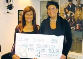 Indehaveren af Salon Medusa i Grenaa, Louise Deri (billedet t.v.) har sendt hele 12.506 kroner afsted til Kræftens Bekæmpelse.