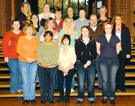 Midterste række fra venstre: Annemette Bech, Hanne Alticozzi, Lisbeth Hansen, Cathrine Nielsen, Jørgen Fyhn Petersen, Pia Henrichsen. Forreste række fra venstre: Marianne Sørensen, Christina Rosborg, Pia Sørensen, Lisbeth Sørensen, Kia Sørensen. Foto: PhotoCare Grenaa