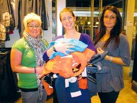Maja Peleg nåede at flå tøj for 3.300 kroner ned af stativerne i forbindelse med VILA-konkurrencen »Tøm butikken på 30 sekunder«. Den glade vinder flankeres af VILA-medarbejderne Christina Lassen (t.v.) og Elena Cappello.