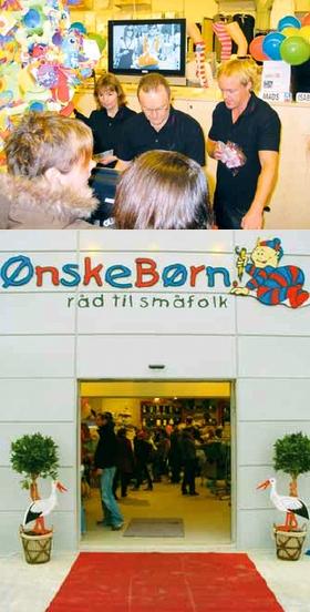 Og der blev taget godt imod den nye Ønskebørn-butik fra kundernes side, for det var stort set umuligt at opdrive en parkeringsplads ved forretningen, idet den slog dørene op for første gang torsdag kl. 10.00. Udover en masse gode tilbud blev der også lokket med gaver i form af gratis Katvig-tasker til de første 100 kunder - plus balloner og vingummi-bamser til børnene. Søndag blev der også lokket med gaver til de første 100 kunder. Her var der tale om tøjdyr. Lørdag fra 12.00 til 16.00 holdt den nye Ønskebørn-butik i øvrigt reception for kunder, bekendte, leverandører og forretningsforbindelser.