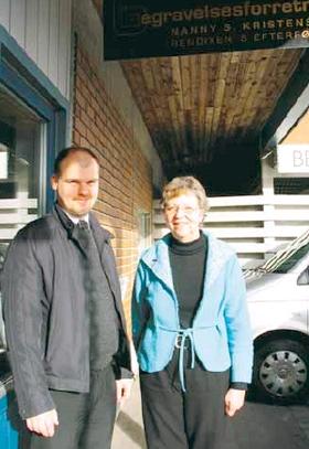 – Med Jan’s indtræden i firmaet bliver det dog pÃ¥ nedsat tid, og det bliver da dejligt at kunne trappe lidt ned rent arbejdsmæssigt. Man skal jo kunne komme i kontakt med en bedemand pÃ¥ alle tider af døgnet, og det er naturligvis en hÃ¥rd tjans, nÃ¥r et sÃ¥dant arbejde er placeret pÃ¥ relativt fÃ¥ hænder, siger Nanny Kristensen, der dog i sin tid som indehaver har fÃ¥et god hjælp fra bÃ¥de husbond Robert Kristensen og sønnen Stig Kristensen. Sidstnævnte, der lider af sclerose, fortsætter i sin flexjob-ordning. Han passer fortrinsvis firmaets telefon.