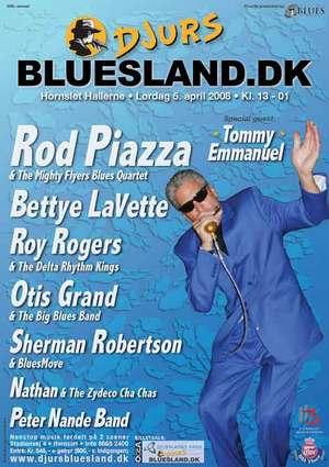 PÃ¥ plakaten er ogsÃ¥ slidefænomenet Roy Rogers & The Delta Rhythm Kings, Tough Texas house Rockin’ Blues med Sherman Robertson & BluesMove, Nathan & The Zydeco Cha Chas, et 7-mands band fra sumpene I Louisiana, med bl.a. trækharmonika og vaskebræt og endelig Ã¥rets danske bluesnavn 2007, Peter Nande Band.
