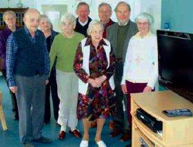 Det var Vita Nielsen, der som repræsentant for Fuglsanggårdens Venner, modtog fjernsynet på beboernes vegne. Henning Bendixen var den glade giver fra Lions Club Grenaa og Søren Holck medbragte »teknikken« fra Expert i Grenaa, der beredvilligt har hjulpet donationen på vej.