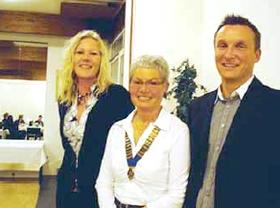 Marianne Schøler Lind og Karsten Rasmussen fra Sorggruppen med Grenaa-Djurs Inner Wheel klubs formand Kirsten Knudsen i midten.
