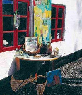 I de hyggelige lokaler i »Den Gamle Smedie« ved Rugaard Gods, udstiller kunstmaleren Lisbet de Linde igen denne sommer.