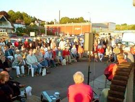 Tænk at så mange forlader kuglegrill og husalter for at opleve vores besætning af gale fribyttere udi sang og musik optræde på slap line. Vi er lige benovede hver gang, og vi håber, at vores glæde kan mærkes på den indsats, vi gør for at bidrage til den gode stemning i den blå time på en lille dansk havn. Ét er sikkert, - vi har altid fantastiske kulisser til rådighed, og håber at publikum til gengæld vil bære over med det danske sommervejr samt konkurrencen fra badenymfer, trafik, losning, tanktømning, galpende tæppepissere, livlige branderter og alle de andre unikke oplevelser, som et levende havnemiljø også kan byde på.