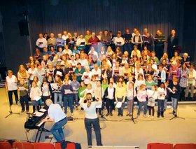 Der er 15 kor på Djursland, men korene har plads til mange flere sangere. Her er kor fra Djursland samlet til generalprøve ved kortræffet 2008.