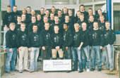 På billedet ses de nye tømrersvende, hvoraf flere af dem kommer her fra det østlige Djursland. Der er tale om følgende lokale tømrersvende - med deres pågældende læreplads/mester nævnt i parantes.