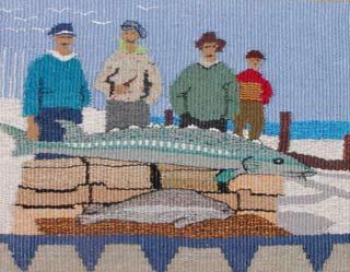 Nu, hvor der igen er åbent efter påskeferien, må man endelig ikke snyde sig selv for at slå et slag omkring rådhuset i Glesborg. Her kan man måneden ud se flotte, vævede egnsmotiver, som en snes lokale vævere (en blanding af professionelle og amatører) har vævet i forbindelse med det igangværende Egnstæppe. Annie Bang Sørensen fra Stenvad er projektets utrættelige leder.