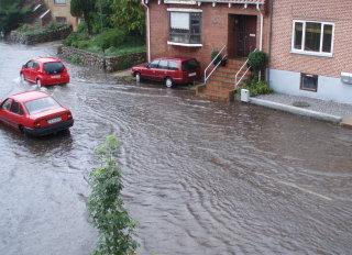 Sådan var det ikke i år! Se her, hvordan en fredag i august fik bilerne til at "hoste" af vand! Billedet er taget fra Vestervej 11 i Grenaa, hvor flere kældre druknede i vand.