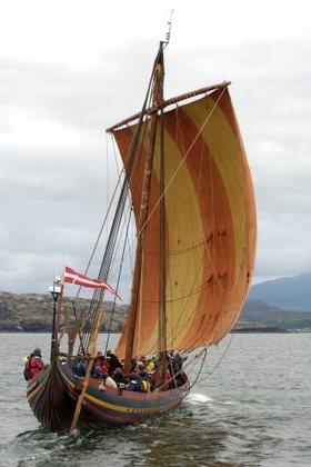 Havhingsten for sejl mod Loch Inver. Foto: Werner Karrasch. (c) Vikingeskibsmuseet i Roskilde