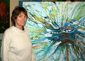 ” Jeg arbejder intuitivt og fylder mine billeder med energi, ro og fordybelse. Energien i mine billeder giver jeg gerne videre til de mennesker, der kan have glæde af den”, fortæller Nina Vilain.