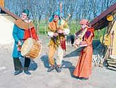 Men de tre borgmestre var ikke de eneste gæster på dagen. De var blot tre blandt rigtig mange gæster, der ville være med til indvielsen af Djurslands Historiske Værksted. Og det skete naturligvis med masser historisk folklore i form af udklædte musikanter og fægtekæmpere, jernalder-mad og en rigtig kanon-salut med mere.