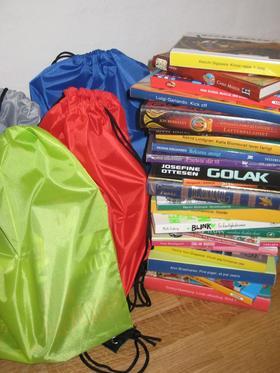 Udover gode bøger indeholder rygsækken også en lille overraskelse, og rygsækken må du beholde når du er færdig med at læse og kigge i bøgerne.