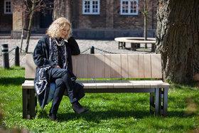 Bænken ”Frederik den 6.” er skabt af 200 Ã¥r gamle flÃ¥de-egetræer fra Vallø Slot. Kunstner Monica Ritterband var selv med, da træerne blev fældet. (Foto: Søren Kjeldgaard)