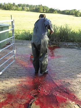 I 2009 fik Lotte Thorsøe lov at kigge slagtermester Brian Dich det lokale slagteri i Edderup over skulderen, og her - i indtrykkene fra det hurtige og ordløse slagtearbejde - fandt hun masser af inspiration til nye værker.