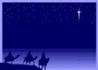 Tre vise mænd på vej til Jesus-barnet.