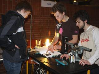 Elever viser fysikforsøg til Åbent-Hus-aften.