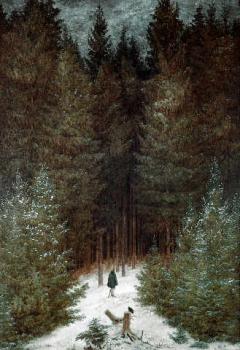 Maleri af Caspar David Friedrich: "Den franske jæger i skoven".