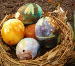 Påskeæg dekoreret af naturens farver ved Bålhuset hos Naturcenter Syddjurs lørdag d. 16/4 kl. 14 - 17