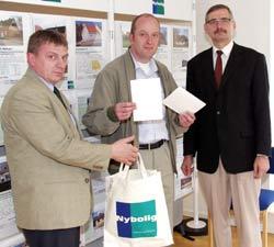 På billedet ses ejendomsmæglerassistent Hans Jensen, Nybolig Kolind (tv), borgmester Kim Dalgaard Poulsen (i midten) og indehaver, statsaut. ejendomsmægler og valuar Christian Høgh, Nybolig Midtdjurs.