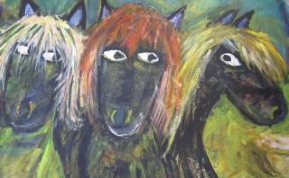 Birthe Kroers akrylmalerierne har fortrinsvis hestemotiver. Birthe Kroer udstiller samtidig tasker syet i skind og pels.