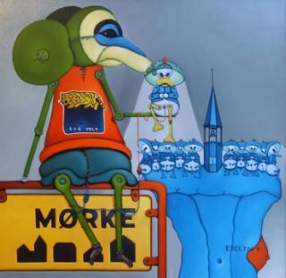 Billedet Et lys i mørke af gæsteudstiller Jens Jalling, på Aprilgruppens 31. udstilling.