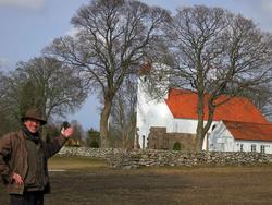 Velkommen til Homå kirke, siger Morten Bay-Mortensen. Han voksede op på gården lige ved siden af kirken.