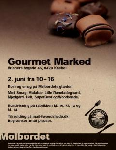 "Molbordet" inviterer til Gourmetsmagning i Vrinners, hvor du kan få et kig ind i produktionen hos Woodshade Organics, Mjødgaard og HELT, - og møde de gode folk fra Malabar, slagteren hos Superbest i Rønde og Lille Raneladegard. Der bliver rig lejlighed til at snakke, smage, dufte og spørge. - Så kom og smag på Molbordets Glæder! - Der vil være rundvisninger kl. 10, kl. 12 og kl. 14. Tilmelding er nødvendig på mail@woodshade.dk. Bemærk at der kun er et begrænset antal pladser. Alle er velkomne - og der er fri éntre !