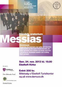 Som afslutning pÃ¥ DaMuCo´s 10 Ã¥rs jubilæum, præsenteres i samarbejde med Ebeltoft Kirke en opførelse af Händels oratorium "Messias". Ved koncerten medvirker Det Jyske Vocalensemble og Ensemble Zimmermann. Ensemblets musikere spiller pÃ¥ historiske instrumenter og tæller kunstnere fra hele Europa. - Vokalensemblet har 8 sangere, der alle optræder som solister og synger sammen i korsatserne. I ensemblet synger bl.a. Anna Wierød, der af tyske medier er blevet udrÃ¥bt som en ny Emma Kirby.