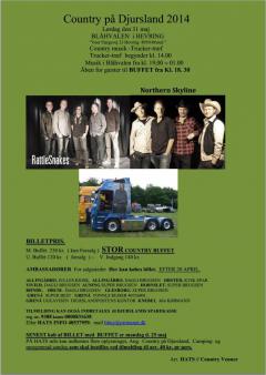 Fra kl. 19 til 01 efter midnat er der country musik, med 2 danske bands, RattleSnakes og Northern Skyline. Gæster kan besøge buffeten kl. 18.30. Trucker-træf begynder kl. 14.