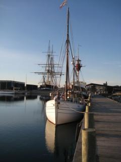 Veteranskibet Skødshoved med Fregatten Jylland i baggrunden.