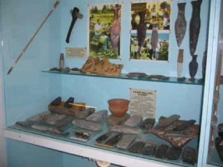 Udstillede flinteredskaber.