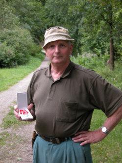Overjæger Poul Kjelgaard med Den Kongelige Belønningsmedalje med Krone.