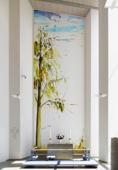 John Kørners alterbillede i Østerhåb Kirke med det adskillige meter høje træ med dets mange bibelske allusioner.