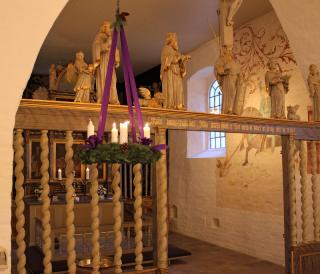 Ved alteret i Feldballe Kirke.