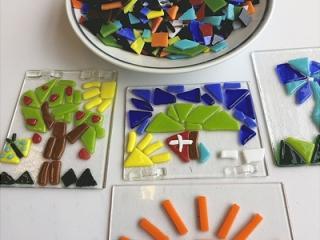 Lav dit eget glasbillede af farvede glasstykker. Glasstykkerne lægges op til et motiv på en gennemsigtig glasplade og smeltes derpå fast. Det færdige glasbillede skal så afkøles langsomt og kan afhentes to dage senere fra kl. 10.30. Der er frokostpause kl. 13-14 og der er ingen aktivitet i pausen. Det kræves ingen tilmelding, - man kommer til efter først-til-mølle princippet. - Entré: 75 kr. + entré til museet.