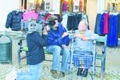 Amatørfotografen Frank Pedersen, der på billedet interviewes, er manden bag en foto-udstilling med billeder af Baunhøj Mølle før, under og efter branden den 2. maj 2002.