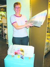 Irene Andersen fra Flügger farver på Trekanten i Grenaa fremviser her kædens nye mega-farvevifte, der rummer hele 920 moderne nuancer.