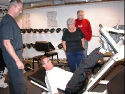 Her er det Tom Alsner, der slider i det under kyndig vejledning fra Anders Sørensen fra Hornslet Motionsklub.